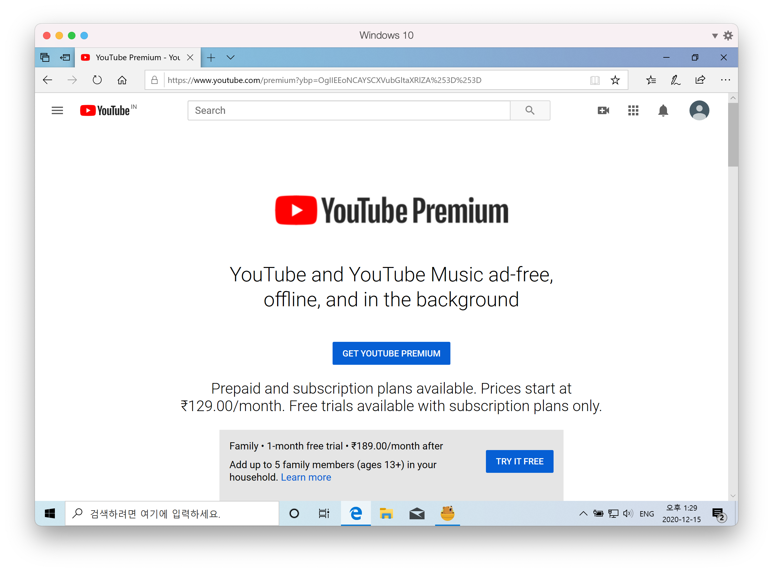 - 인도 유튜브 사이트에서 프리미엄 맴버십 가입을 한다.